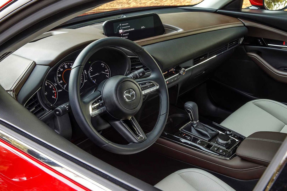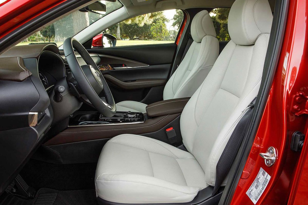 Khoang nội thất của mẫu xe ô tô 5 chỗ gầm cao Mazda CX-30 2021 gần như được giữ nguyên từ mẫu xe 5 chỗ All-New Mazda3 sang. Nội thất xe tiếp tục ứng dụng hiệu quả triết lý Human Centric – lấy con người làm trung tâm, nhờ đó tổng quan nội thất tuy tinh gọn nhưng dễ thao tác. Đồng thời, cách thức phản hồi của các chức năng cũng được chú trọng nhằm mang đến cảm xúc cho người dùng.
