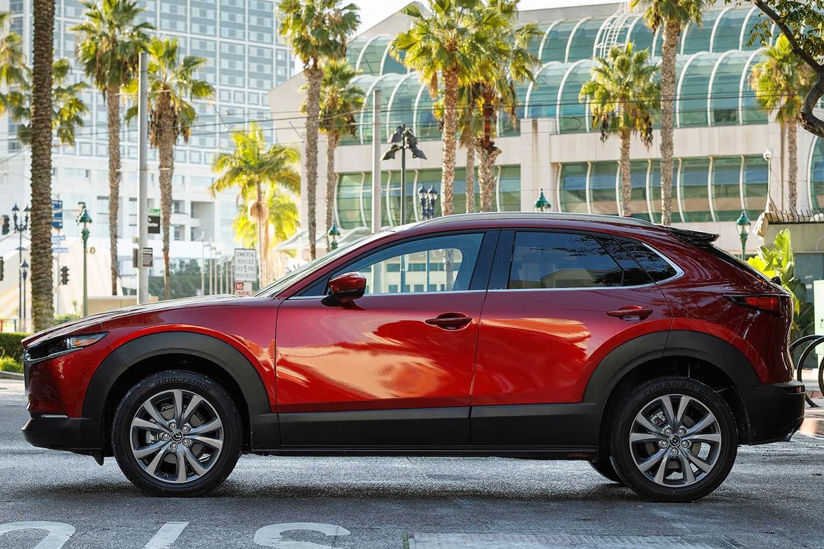 “Dàn chân” của CX-30 có cấu trúc 5 chấu kép kích thước 18 inch cân đối với thân hình tổng thể. Cả 2 trụ B và C đều được sơn đen bóng là điểm cộng dành cho CX-30 giúp toát lên vẻ cao cấp, sang trọng. Xe được trang bị cặp gương chiếu hậu hiện đại có tính năng gập-chỉnh điện, chống chói tự động, nhớ vị trí tích hợp đèn báo rẽ.