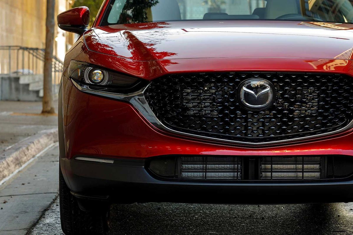 Nổi bật nhất ở phần đầu xe là bộ lưới tản nhiệt dạng tổ ong sơn đen kết hợp cùng viền mạ crom đồ hoạ cánh chim sắc sảo, tinh tế. Dù rằng thiết kế này không quá mới mẻ khi đã xuất hiện trên All-New Mazda3 nhưng phải thừa nhận rằng nó giúp CX-30 trông cuốn hút, thời trang hơn hẳn các mẫu SUV đô thị khác.